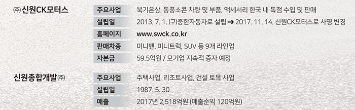 이에 신원종합개발은 60억원 규모의 유상증자를 통해 북기은상의 ‘CK 미니트럭’과 ‘CK 미니밴’ 국내 판매권을 인수하고 ㈜신원 CK모터스를 탄생시켰다.