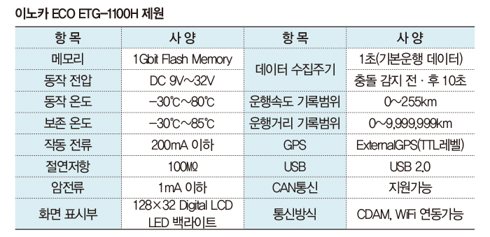 상용차 전장부품 제조업체 ㈜이노카가 개발한 디지털운행기록계(DTG) ‘ECO DTG-1100H’가 인기를 끌고 있다. 올해부터는 국내 완성차 OEM에도 적용된다.