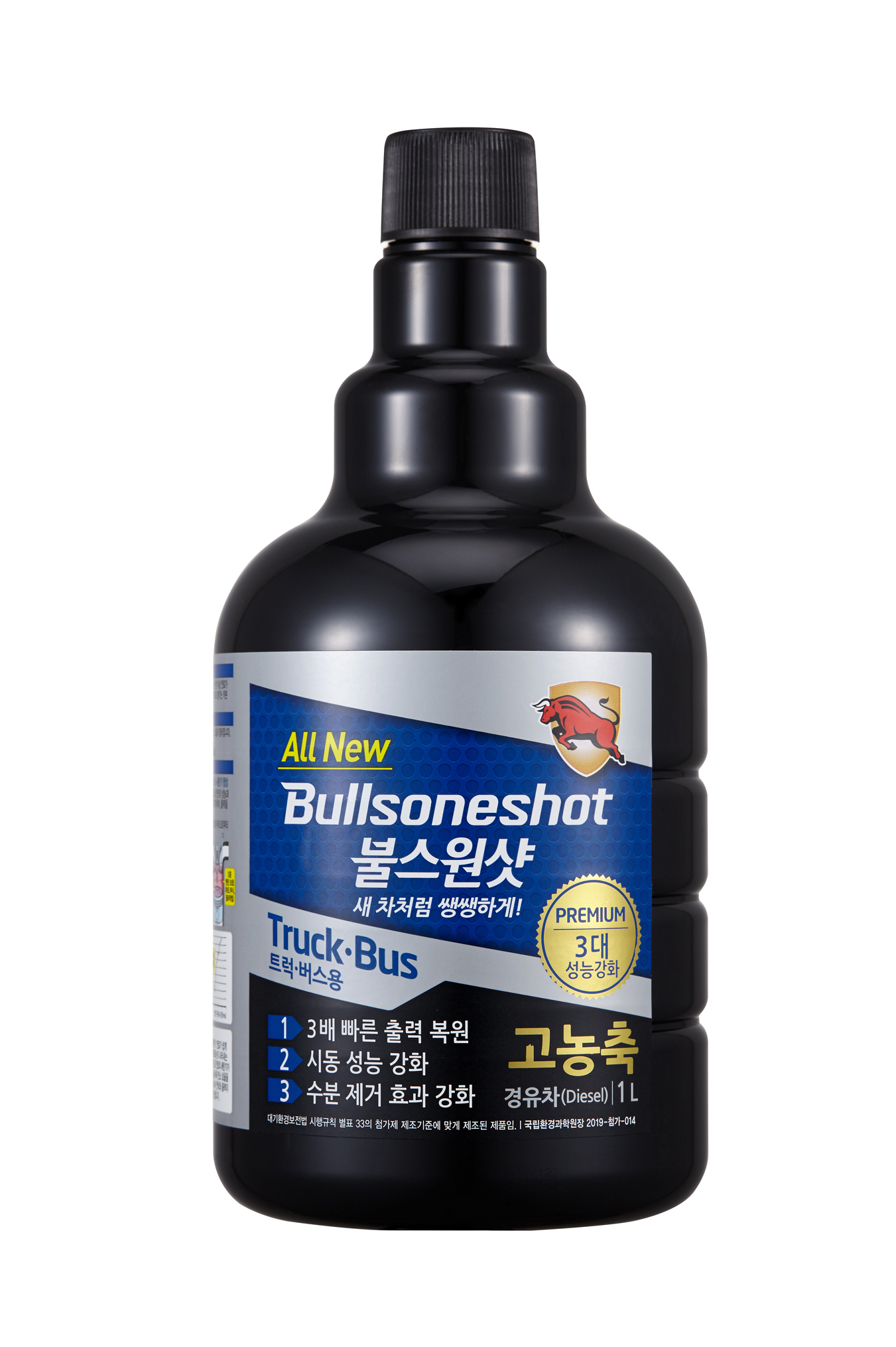 이를 바탕으로 제품 개선이 진행된 신제품, 올 뉴 불스원샷 트럭버스용은 탁월한 엔진 세정 효과를 기본으로 갖췄으며, 출력 복원, 시동 성능 개선 및 수분 제거 등 트럭 및 버스 엔진에 요구되는 3대 주요 성능을 대폭 강화한 것이 특징이다.