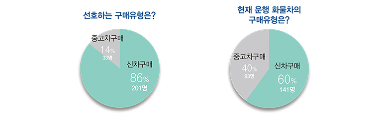다만 선호도와는 달리 ‘실제 운행 중인 화물차의 구매유형’을 묻는 질문에는 조금 다른 양상이 나타났다.