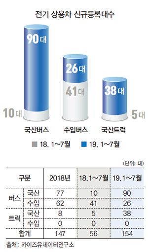 소형 이하급 전기트럭과 시내 전기버스가 대다수