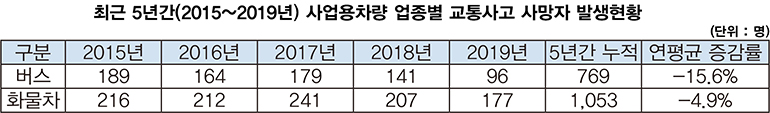 화물차는 연 평균 4.9% 감소에 그쳐, 안전대책 대폭 강화