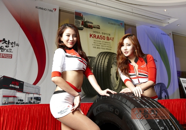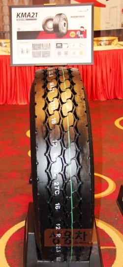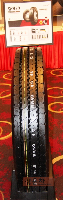 또한, 2013년 히트제품으로 대형카고 시장을 선도했던 ‘KRA50’을 대형덤프 및 중형카고용 규격으로 확대 출시했다. 대형덤프용 제품은 고강도 24PR을 적용하고 내구성을 강화했다. 그루브 형상 변경 및 신재료 적용으로 돌 끼임을 최소화했다. 중형카고용 제품은 국내 업계 최초로 고강도 18PR 적용 및 신개발 트레드 고무를 적용해 금호타이어의 대표 제품으로 자리매김할 것으로 기대하고 있다. 이와 함께 마일리지 성능을 타사대비 약 20% 향상시킨 대형카고 전륜용 프리미엄 신제품 ‘KRS55’와 고강도 PR을 적용한 'KMA21'도 출시했다.