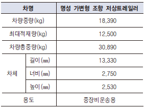 특허 출원한 명성중공업의 가변 저상트레일러는 적재물 성격에 따라 적재함 길이를 1단 혹은 2단까지, 최대 16m까지 확장 가능하며, 확장 시 최대적재량이 1만 2,500kg이다.