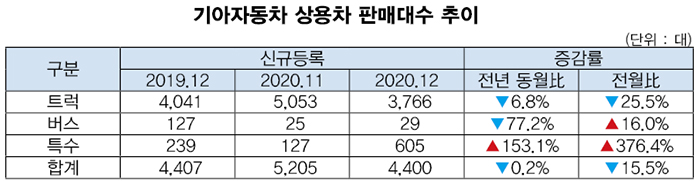 기아자동차가 2020년 12월 총 4,400대의 상용차를 판매했다고 밝혔다.