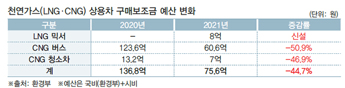 CNG 버스·청소차 보조금은 ‘반토막’