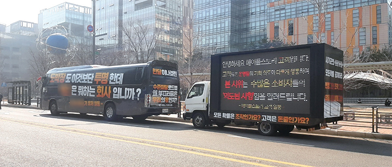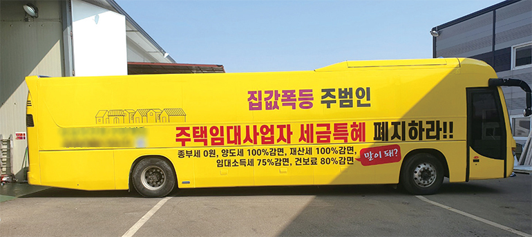 선거철에나 볼법한 광고트럭 및 버스가 최근 시위용으로 조명되고 있다. 국회의사당이나 산업단지 일대를 거닐다보면 소비자의 호소가 담긴 트럭·버스가 주변을 누비곤 한다. 코로나19로 집단 시위가 제한되는 요즘, ‘트럭·버스 시위’로 목소리를 대변하고 있는 것이다.