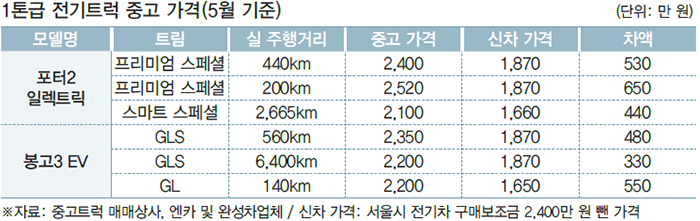 1톤 중고 전기트럭에 붙은 웃돈 수백만 원