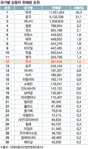 동북아 3국…세계 상용차 판매량의 1/4 담당