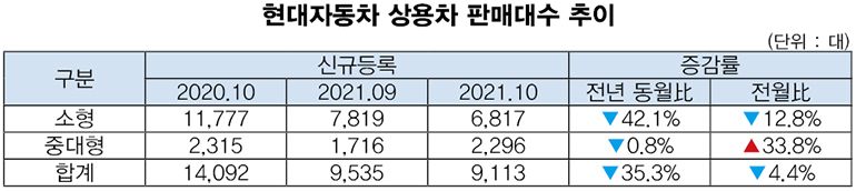 현대자동차가 2021년 10월 총 9,113대의 상용차를 판매했다고 밝혔다.