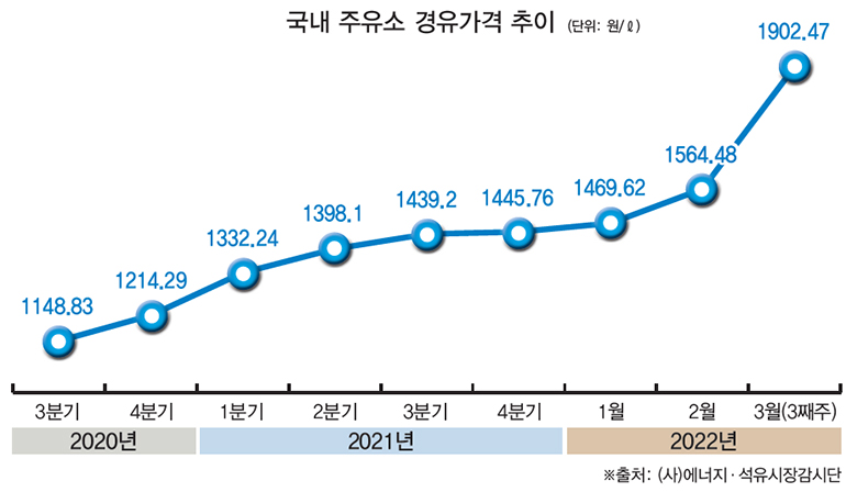 3월 말 기준ℓ당 1,900원 돌파…유류세 인하론 역부족