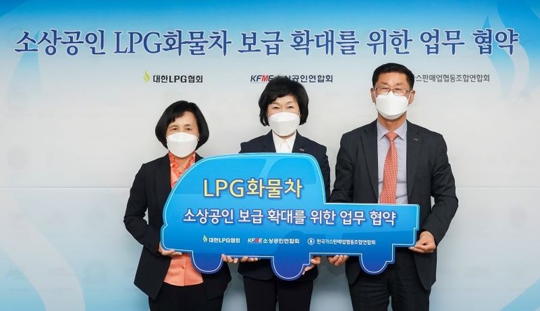 대한LPG협회(협회장 이필재)는 지난 20일 소상공인연합회 및 한국가스판매업연합회와 ‘소상공인 LPG화물차 보급 확대를 위한 업무협약’을 체결했다. 이필재 대한LPG협회 협회장, 오세희 소상공인연합회 회장, 김임용 한국가스판매업협동조합연합회장 등 업계 관계자 20여 명이 참석한 가운데 진행됐다.