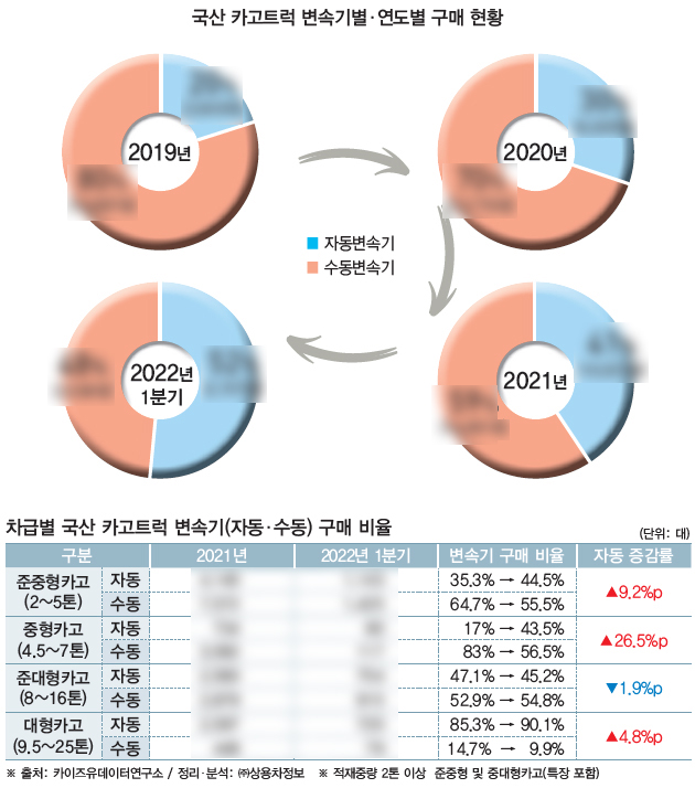 국산 카고트럭 자동변속기 탑재 비율 분석