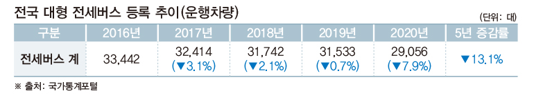 시내버스도 코로나 전후 수요 감소세 뚜렷