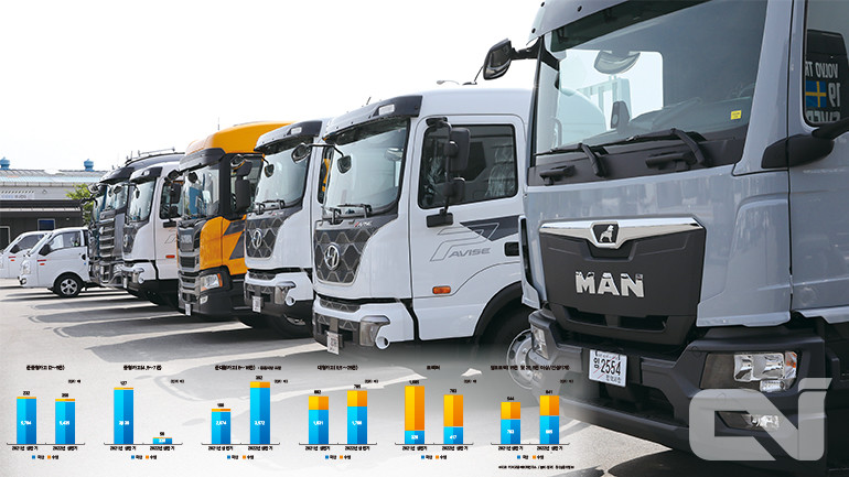 차종별로 보면 희비가 엇갈렸다. 준대형 및 대형카고 판매량은 전년 상반기 대비 증가한 반면, 준중형 및 중형카고 실적은 같은 기간 감소했다. 트랙터의 경우 물류 적체에 따른 수출입 물동량 감소로 실적이 줄었고, 대형 덤프트럭은 대폐차 시기가 맞물리며 판매량이 증가했다.