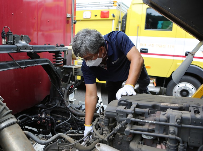 이번 무상점검 행사 기간 동안 전자동변속기를 장착한 소방차량의 성능과 유지관리 상황, 변속기 오일 수준 등을 점검했으며, 차량이 점검받을 동안 각 소방서의 차량 정비관들을 대상으로 여름철 변속기 유지관리 방법 등에 대해 설명했다.