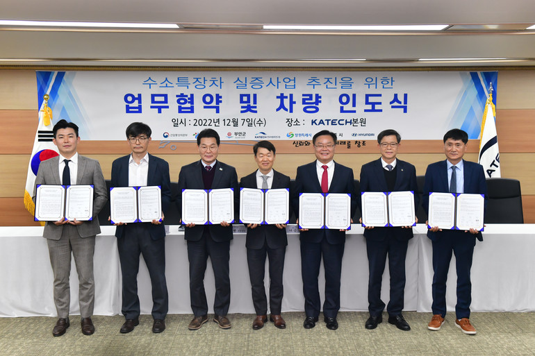 한국자동차연구원(이하 한자연)은 7일 충남 천안시 풍세면에 위치한 한국자동차연구원 본원에서 수소특장차 실증사업 추진을 위한 상호 협력에 관한 업무협약서(MOU)를 체결했다고 밝혔다.