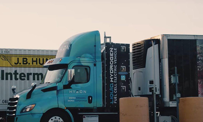 수소 산업 전문업체 H2뷰는 지난달 30일 미국 수소전기트럭 제조업체 ‘하이존 모터스(Hyzon Motors, 이하 하이존)’가 ‘차트 인더스트리(Chart Industries, 이하 차트)’ 및 ‘퍼포먼스 푸드 그룹(Performance Food Group, 이하 PFG)’과 손잡고 액화 수소를 사용하는 수소연료전지 트럭의 실증사업에 성공했다고 보도했다.