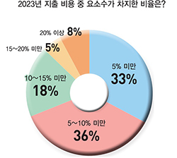 이어 “올해 지출 비용 중 요소수가 차지하는 비율은 어느 정도인가?”라는 질문에 응답자의 36%가 ‘5~10% 미만’이라고 답했다. 이어 ‘5% 미만’ 33%, ‘10%에서 15% 미만’ 18%, ‘15%에서 20% 미만’ 5%, ‘20% 이상’ 8% 등으로 나타났다.