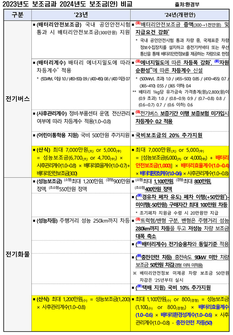 환경부, 2024 전기상용차 보조금 개편... 6일부터 적용