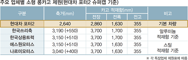 2.5톤급 맞먹는 화물 적재 가능…차주들에 인기