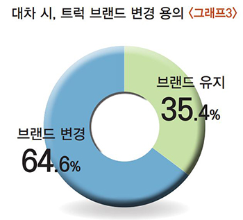 향후 중대형 화물차 대차와 관련해서는 현재의 ‘브랜드 유지’ 의사가 35%에 그친 반면, ‘브랜드 변경’ 의향은 65%에 달했다.