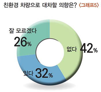최근 들어 친환경 트럭에 대한 관심이 증가하는 추세지만, 화물차주들 사이에서는 아직 친환경차 전환에 대한 공감대가 크지는 않은 것으로 조사됐다. 향후 친환경차량으로 대차할 의향이 있느냐는 질문에 ‘없다’는 응답이 42%로 가장 많았다.