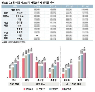 국산 트럭 자동변속기 선택률, 3년 새 30%→64%