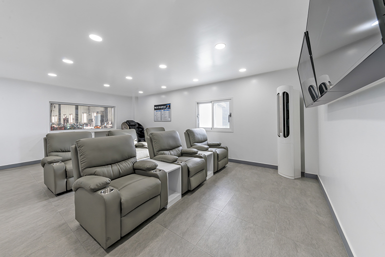 고객 편의를 위한 접수처를 포함한 내부 시설 개선도 이뤄졌다. 고객 대기실에는 안마 의자와 1인용 소파를 마련해 차량 점검 및 수리 시간 동안 고객이 편안히 휴식할 수 있도록 했다.