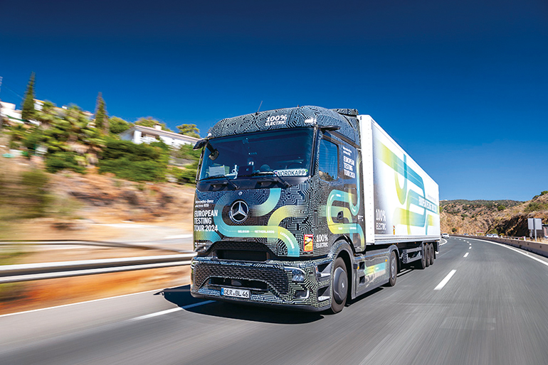 벤츠트럭의 e악트로스600은 새로운 캡(Cabin) 디자인 적용으로 종전 모델보다 공기 흐름이 9% 개선되어 한층 더 효율성이 강화됐다. 이와 함께 400kW 전기 모터 2개와 각각 207kWh의 LFP(리튬인산철) 배터리팩 3개가 더해져 주행 성능을 높이 받았다.