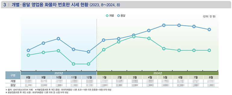 [통계] 개별ㆍ용달 영업용 화물차 번호판 시세 현황 (2023.8~2024.8) 저작권자 © 상용차신문 무단전재 및 재배포 금지 키워드 Tags #통계 상용차신문 news@cvinfo.com 다른기사 보기 SNS 기사보내기 페이스북(으)로 기사보내기 트위터(으)로 기사보내기 카카오스토리(으)로 기사보내기 URL복사(으)로 기사보내기 이메일(으)로 기사보내기 다른 공유 찾기 기사스크랩하기 당신만 안 본 뉴스 타타대우-삼척시, 수소엔진 실증 생태계 구축 위한 MOU 체결 벤츠트럭 'e악트로스 600', 충돌 시험서 차량 안전성 입증 기아 4조 원 투자, PBV 전용 'EVO Plant' 화성에 조성...연 25만 대 생산 목표 친환경 상용차 연료비, 내연기관 추월하나? 현대차그룹 수소 브랜드 HTWO, 중국 광저우에 수소버스 공급 만트럭버스코리아, '바디빌더 세미나 2025'로 특장 업계 협력 강화 기아, 평택에 PBV 특화 거점 'PBV 익스피리언스 센터' 개소 타타대우-삼척시, 수소엔진 실증 생태계 구축 위한 MOU 체결 댓글삭제 삭제한 댓글은 다시 복구할 수 없습니다. 그래도 삭제하시겠습니까? 비밀번호 닫기 기사 댓글 0 댓글 접기 로그인 후 이용 가능합니다. 댓글 내용입력 비회원 로그인 이름 비밀번호 댓글 내용입력 댓글쓰기 계정을 선택하시면 로그인·계정인증을 통해 댓글을 남기실 수 있습니다. 회원 로그인 비회원 글쓰기 이름 비밀번호 자동등록방지 로그인 옵션 창닫기 주요기사 만트럭버스코리아, 탱크로리·BCC 전용 '뉴 MAN TGX 4800' 출시 서울시 보유 경유청소차 2,800대 중 절반이 1~5톤급 한성특장, 특장업계 최초 ‘트럭·특장 전손보험’ 첫 적용...3천만원 재구매 지원 만트럭버스코리아, '바디빌더 세미나 2025'로 특장 업계 협력 강화 공신력 데이터 기반 ‘중고 트럭과 특장차 시세’ 제공한다 10월 트럭 시장, 전년 동월 대비 25.5% 감소