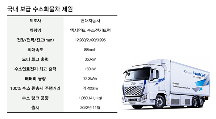 한편 올해 9월 기준으로 전국의 수소차는 약 3만 7천 대(누적 기준)가 보급되었으며, 이중 수소화물차(22년 11월 정식 출시)는 14대만 집계되고 있다.