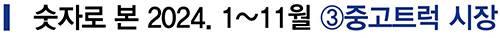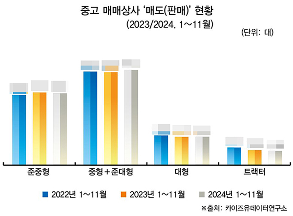 9.5톤 이상 대형카고는 지난해 1월부터 11월까지 총 2,454대가 거래되며 전년 동기 2,439대 대비 0.6% 증가하는데 그쳤다.