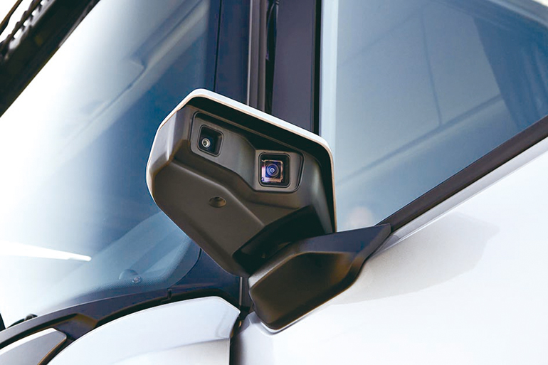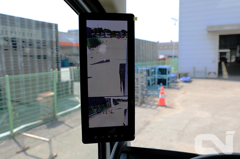 기존 사이드미러와 같이 루프 프레임 양측에 장착된 카메라가 촬영한 영상을 15.2인치 모니터로 전송한다. 필요시 차량 주변을 확인할 수 있고 화물 및 연료 절도와 같은 범죄 상황에서는 필요에 따라 경고음도 울린다.