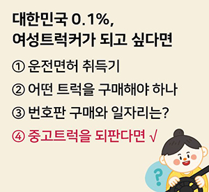 관계자는 “차에 대해서 잘 알지 못하다 보니 초보 트럭커가 가장 놓치기 쉬운 부분이 차량 관리다. 만약 관리를 잘 하지 않은 채 중고트럭 시장에 다시 팔 경우에는 제값을 받지 못하는 불상사가 생길 수 있다.”고 말했다.