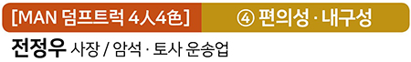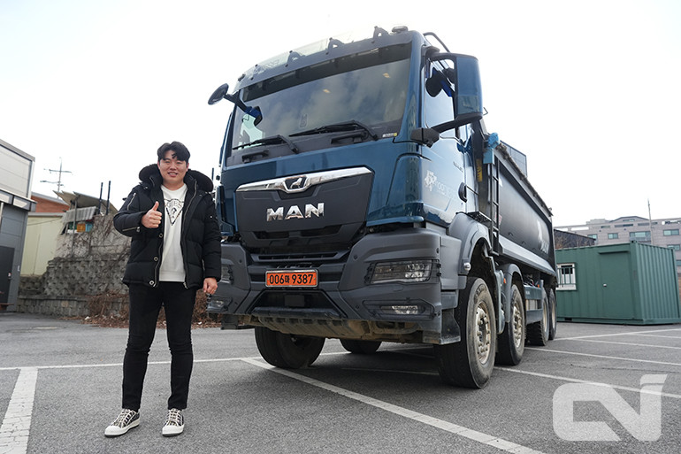 지난해 6월 MAN TGS 510 덤프트럭을 출고한 전정우(36) 사장. 첫인상은 젊고 강인함이었다. 만트럭의 외관 모습과도 어쩌면 닮은듯해 보였다. 하루 최대 1,000km까지 운행해 봤다는 그에게 트럭에서 운행중 뿜어 나오는 맹렬한 사운드는 놓칠 수 없는 매력 중 하나다. 운전에 활기와 생기를 주기 때문이다.