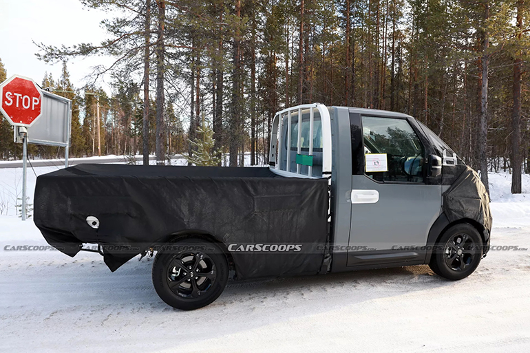 유럽의 자동차 매체 카스쿱스(Carscoops)에 따르면, 위장막으로 덮인 프로토타입 트럭 버전의 PV5는 유럽 현지의 겨울철 테스트 중에 촬영됐으며, 전·후면 모두 위장막으로 가려진 상태였다.