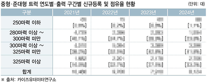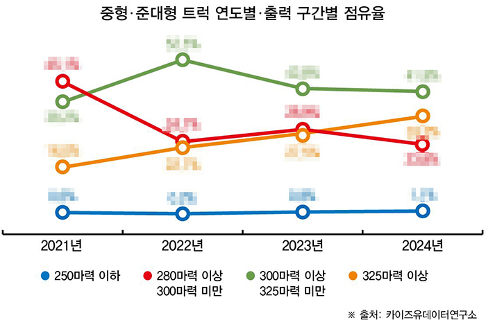 2021년까지 대세였던 280마력급 트럭 4년만 점유율 45%→24%로 반토막