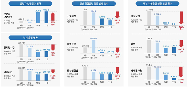 운전자 안전점수 기존 대비 70% 향상돼