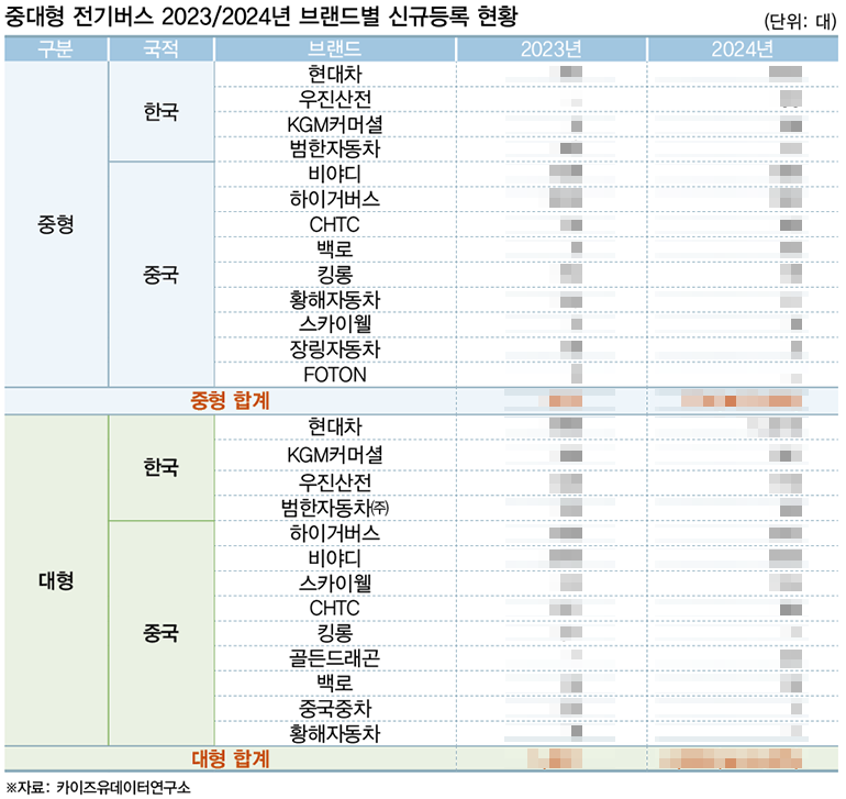 주목할 점은 중형 전기버스 시장이과거 중국 브랜드의 강세가 두드러졌으나, 최근 현대차가 급부상하며 가성비에서 강점을 보이던 중국 모델을 따라 잡기 시작했다는 것이다. 현대차는 국내 환경에 맞는 제품 최적화와 서비스 네트워크를 바탕으로 중형 시장에서도 경쟁력을 확보했다.