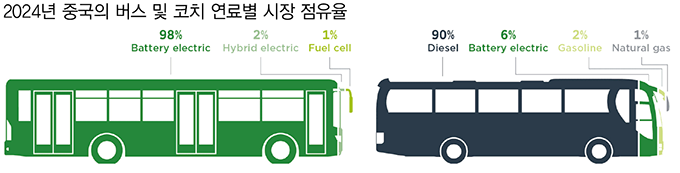 이에 따라 신규 수요는 다소 둔화된 것으로 나타났다. ICCT에 따르면, 중국 정부의 ‘노후 전기버스 및 배터리 교체’ 보조금이 지난해 12월 종료를 앞두면서 수요가 몰렸고, 한 달간 1만 7,000대 이상의 시내버스가 판매됐다. 이중 약 99%가 전기 모델이었다.