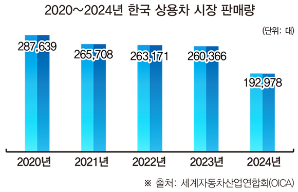 글로벌 상용차 시장에서 한국의 생산량과 판매량 순위가 5년 연속 뒤로 밀린 것으로 나타났다. 세계자동차산업연합회(OICA)에 따르면, 지난해 전 세계에서 생산된 상용차(트럭·버스)는 2,482만 대, 판매된 차량은 2,777만 대로 집계됐다.