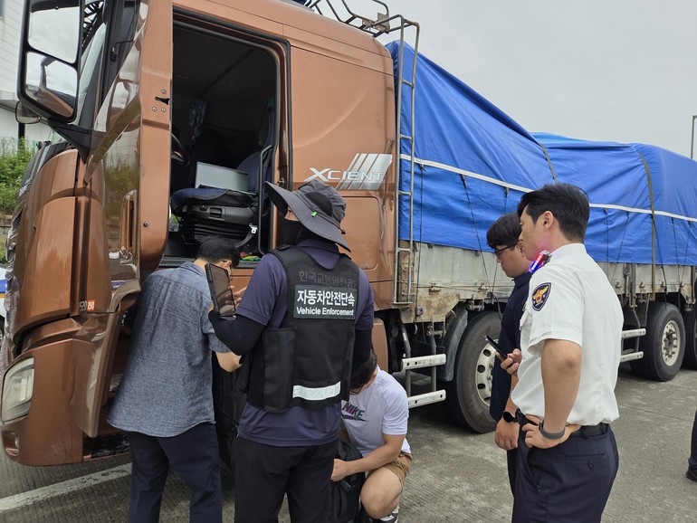 한국교통안전공단(이사장 정용식, 이하 TS)은 지난 25일 경부고속도로 북천안TG 및 망향휴게소에서 화물차 불법개조·불법행위 점검을 위한 유관기관 합동단속을 실시했다고 밝혔다.