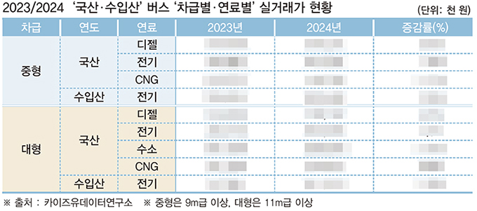전기 및 수소 기반 친환경 버스로의 전환이 가속화되고 있는 가운데, 지난해 국내 중대형 버스의 실거래가가 전기버스를 중심으로 소폭 상승한 것으로 나타났다. 이와 함께 국내에 보급되고 있는 중형 및 대형 전기버스 가격은 국산이 수입산(주로 중국산)에 비해 최대 15%, 금액으로는 5,100만 원 가량 비싼 것으로 분석됐다.