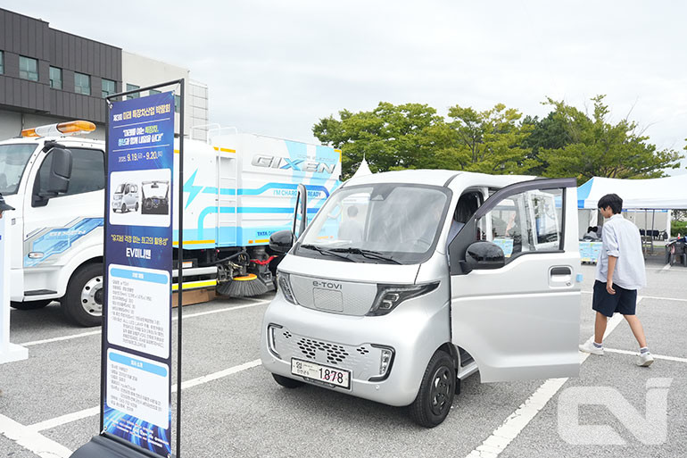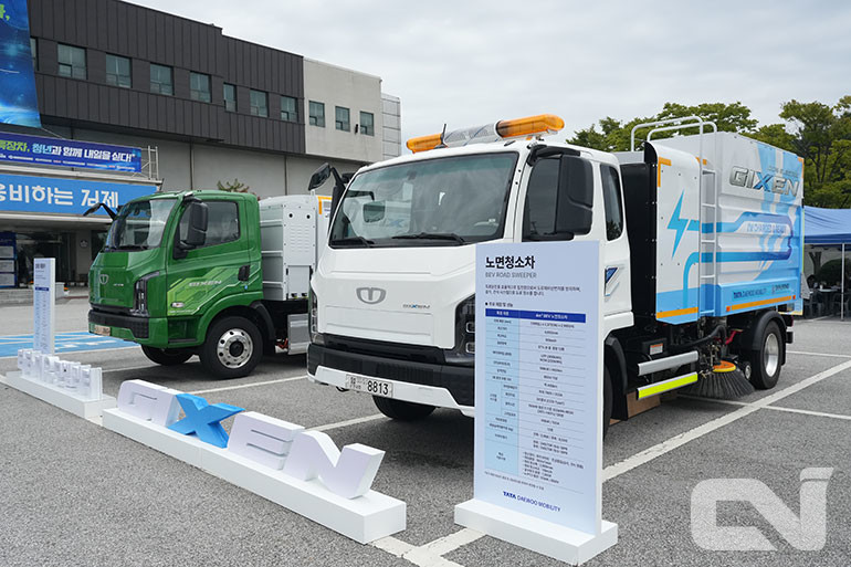 타타대우모빌리티는 이번 전시에서 지난해 공개한 준중형 트럭 ‘기쎈(GIXEN)’을 기반으로 한 ‘4㎡ BEV 노면 청소차’와 ‘7㎡ BEV 압축형 재활용차’를 선보였다.