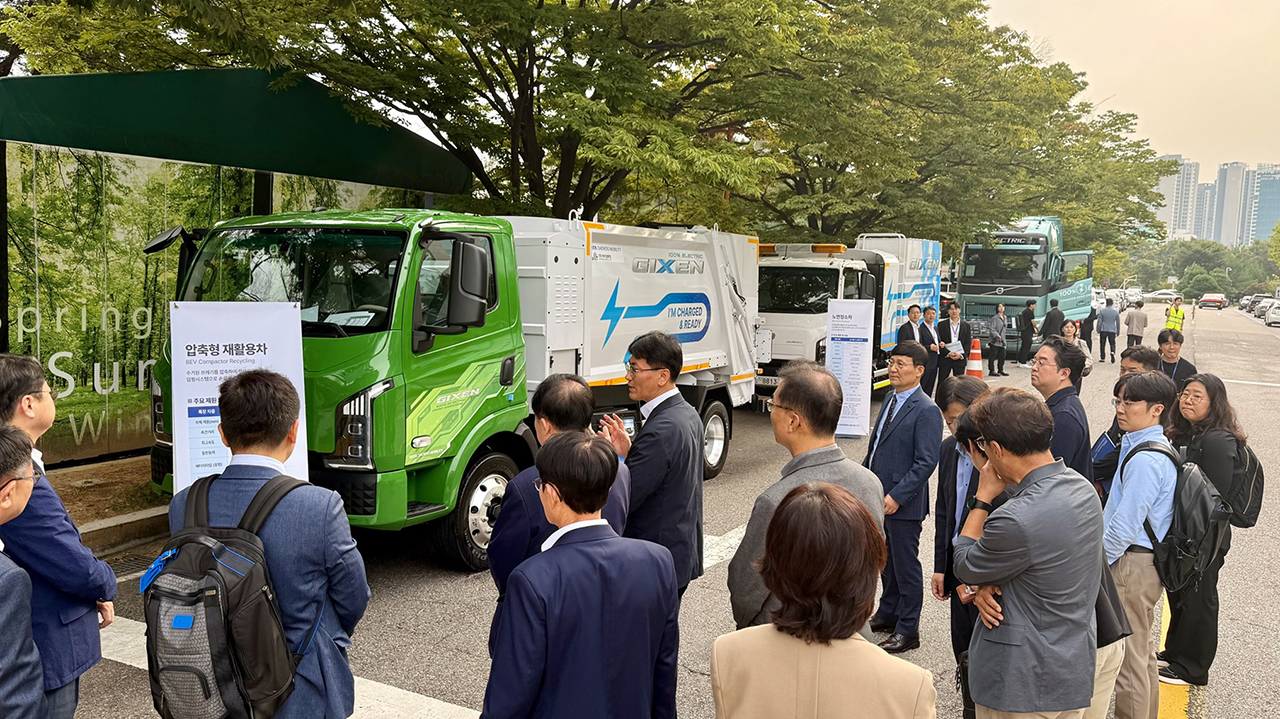 행사 현장에는 준중형 전기트럭 '기쎈(GIXEN)'을 기반으로 한 ▲압축형 전기 재활용품 수거차 ▲전기 노면청소차가 전시됐다. 두 차량은 전기 파워트레인을 기반으로 무공해 주행이 가능하며, 저소음·저진동 특성으로 도심 및 야간 작업에 최적화됐다. 고효율 배터리와 초급속 충전 기능을 적용해 안정적으로 운행할 수 있는 것도 특징이다.