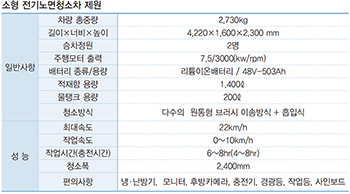 특장차 전문업체 ㈜태강기업이 전용 섀시캡을 적용하여 청소작업의 효율성을 높인 ‘전기노면청소차’를 지난 달 출시했다.