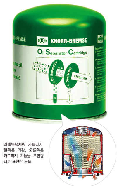 고품질의 오일 및 습기 제거 기술을 자사 카트리지에 적용하고 있는 크노르브레이크는 기술 적용으로 발생하는 높은 비용이 소비자들의 제품 선택에 걸림돌이 된다고 판단, 필터 내부의 소모품을 제외한 부품의 재사용으로 단가를 낮춘 재제조 제품으로 출시한 것.
