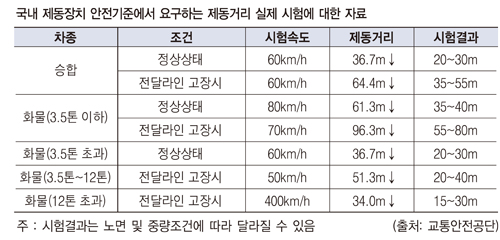현재 국내 제동장치 안전기준에서는 모든 자동차에 ABS와 BAS(Brake Assist System) 장착을 의무화하고 있다. 하지만 ESC의 경우 4.5톤 이상 중대형 차종의 경우는 예외 대상이다. 이에 교통안전공단은 운전자의 안전을 위해 향후 안전기준을 더욱 강화해 ESC 장착을 의무화할 예정이다.