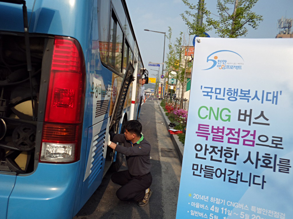 이번 점검에는 국토교통부, 교통안전공단, 제작사(현대, 대우) 등 110여 명의 전문 인력으로 구성된 ‘합동 점검반’이 투입된다. 현재 운행 중인 3만여 대의 압축천연가스(CNG)버스·화물차를 대상으로 현장점검을 실시할 방침이다.